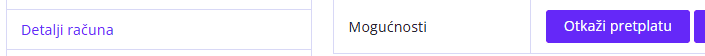 Preplatu možeš trenutno otkazati klikom na dugme “Otkaži pretplatu” koja se nalazi u opciji “Detalji računa” unutar AI SISTEM-a. Alternativno, jednostavno nam pošalji e-mail u kojem piše nešto poput “otkazujem pretplatu”.